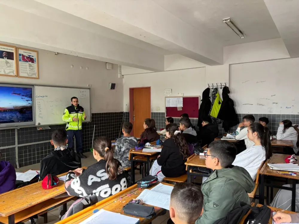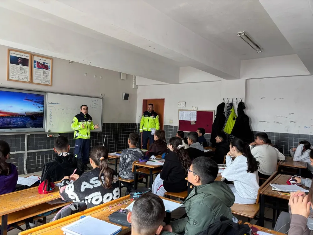 Görevli ekipler tarafından yapılan sunumda, trafik kuralları ve güvenli davranışlar hakkında kapsamlı bilgiler paylaşıldı.