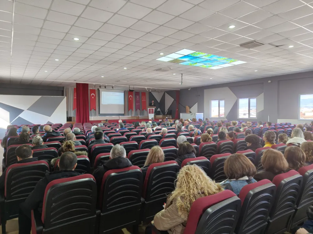 İlçe Milli Eğitim Müdürü Mükremin KARASU, toplantılarda öğretmenlere hitap ederek, bilgiye erişim yollarının arttığı günümüzde, bilgiyi etkin bir şekilde kullanma ve beceriye dönüştürme ihtiyacının ön plana çıktığını, Türkiye Yüzyılı Maarif Modeli ile çağın gereklerine uygun öğretmenin sadece öğreten değil, yol gösterici olduğu, geçmişten aldığı güçle geleceğine ufuklar açan köklerden geleceğe anlayışı ile Türkiye Yüzyılı Maarif Modelinin öğrencilerin aktif ve çevresiyle etkileşim içinde olduğu, öğrenme sorumluluğunu aldığı, öğrencilerin çok yönlü gelişmelerinin, farklı alanlarda bilgi ve becerilere sahip olmalarını amaçlandığı ve disiplinler arası ilişkilere de yer verildiğini ifade etti. İlçe Milli Eğitim Müdürlüğü Öğretmen Yetiştirme ve Geliştirme Şube Müdürü Ahmet TAŞÇI’nın da eşlik ettiği toplantılarda Mükremin KARASU, tüm öğretmenlere çalışmalarında başarılar diledi.