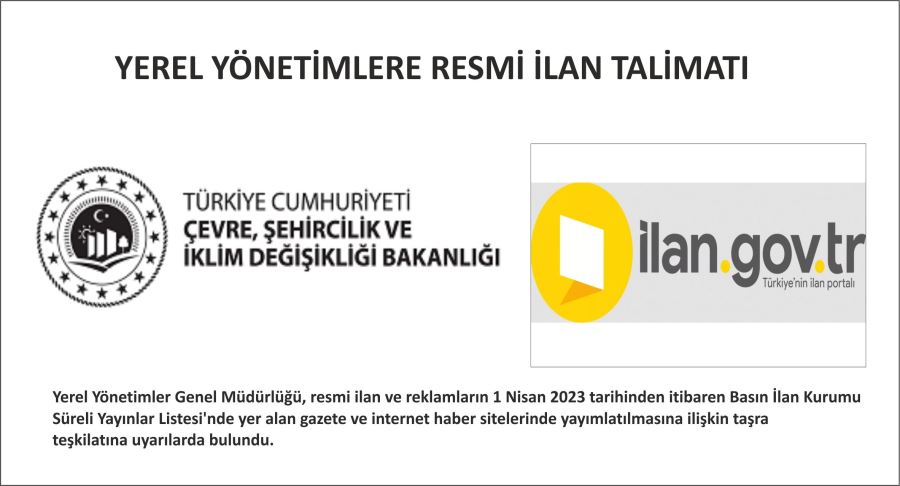 Yerel Yönetimler Genel Müdürlüğü, resmi ilan ve reklamların 1 Nisan 2023 tarihinden itibaren Basın İlan Kurumu Süreli Yayınlar Listesi’nde yer alan gazete ve internet haber sitelerinde yayımlatılmasına ilişkin taşra teşkilatına uyarılarda bulundu.